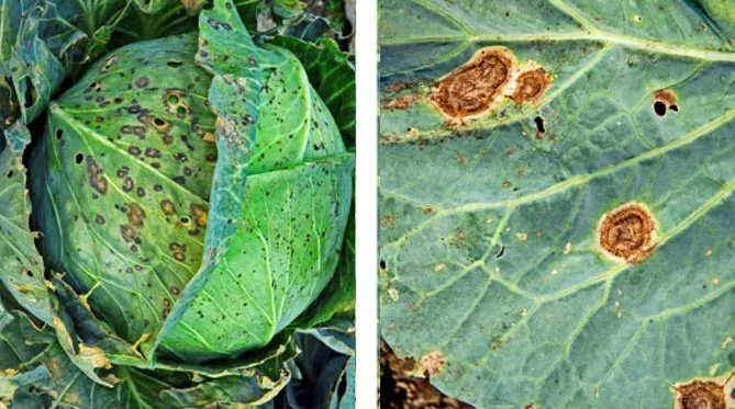 Болезнь альтернариоз или черная пятнистость капусты вызывают грибы рода Alternaria: A.brassicae и A. alternata.
