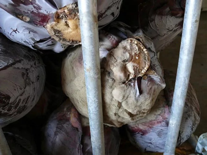 - При длительном хранении симптомы проявляются в виде обильного пушистого белого мицелиального нароста на пораженных кочанах.