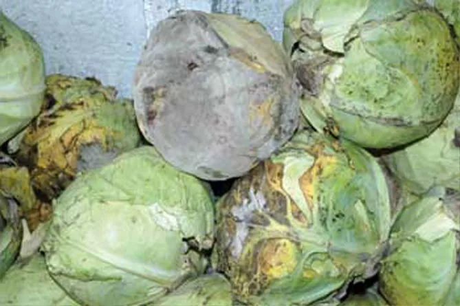 - Наибольшая вредоносность болезни на белокочанной капусте приходится на предуборочный период. В это время заболевание не оказывает прямого влияния на урожайность, но снижает лежкость кочанов.