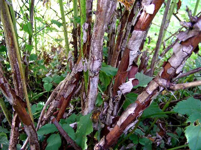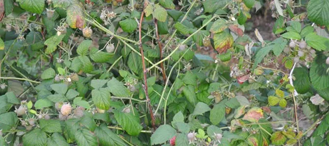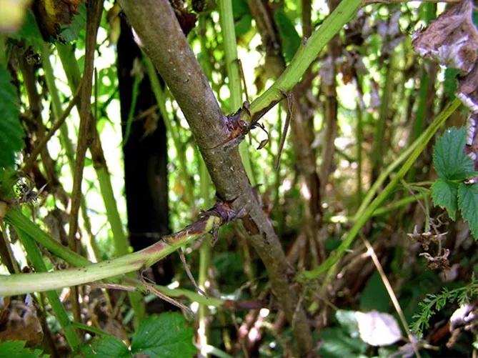 - В итоге у малины вянут и сохнут побеги, молодые побеги очень быстро погибают, причем наибольшие повреждения наблюдаются летом, на следующий год после заражения инфекцией. Если поражения образуются в нижней, надземной части побегов, последние легко могут сломаться.