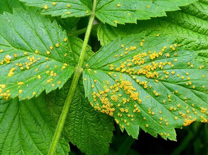 Эта болезнь листьев малины определяется по следующим симптомам:
