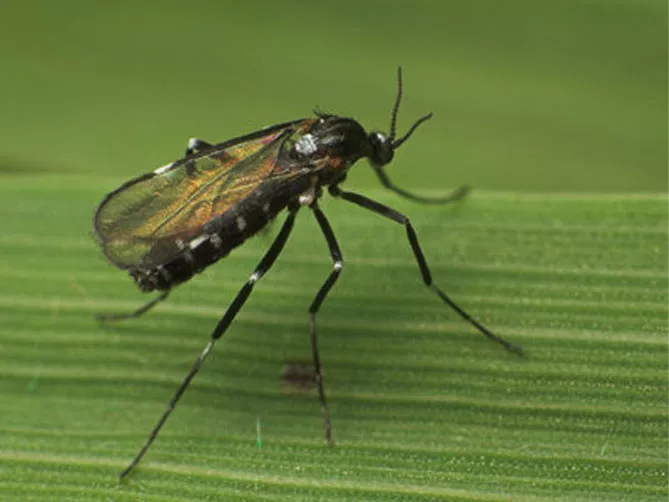 Довольно опасный вредитель малинная побеговая галлица (Resseliella theobaldi). Взрослое насекомое – оранжево-коричневая муха, напоминающая комара.