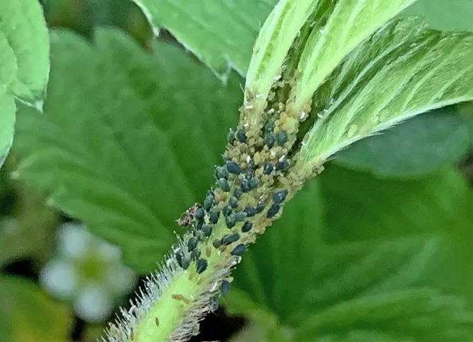Черные жуки семейства долгоносиков под названием цветоед малинный (Anthonomus rubi) встречаются также на землянике, клубнике, ежевике.