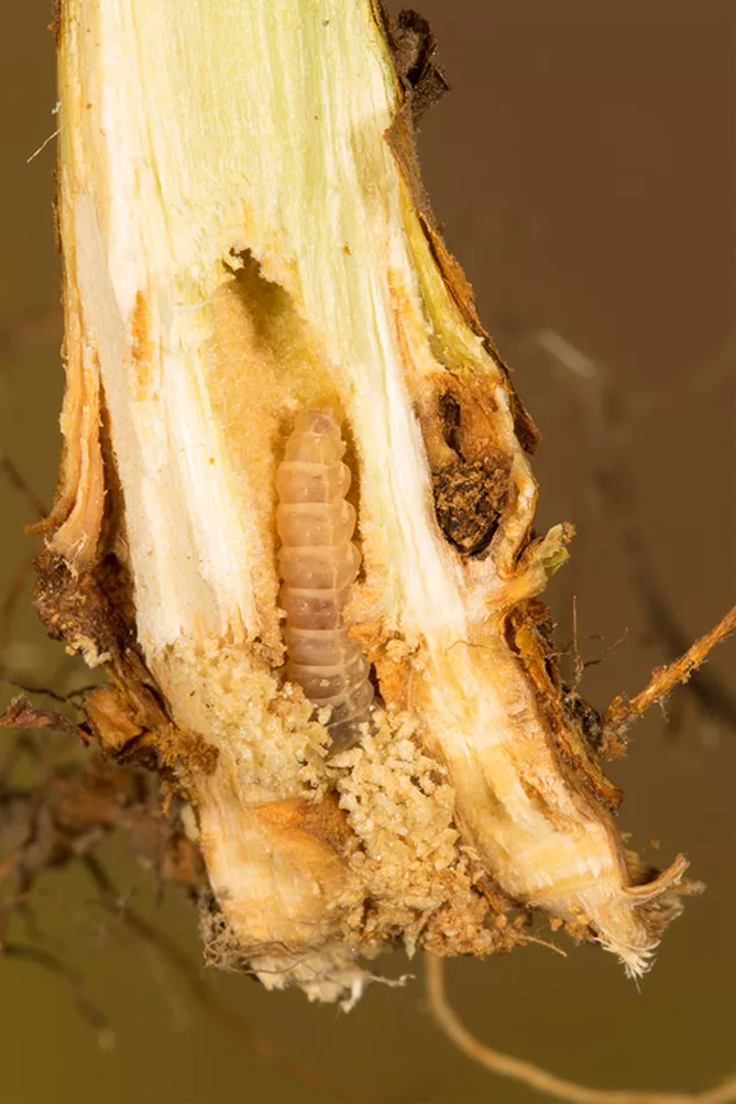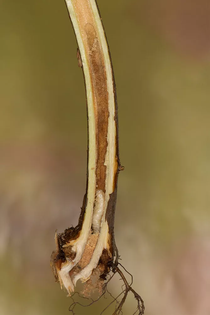 - Самки откладывают яйца в распустившиеся цветочные почки, затем подгрызают стебли ниже бутонов.