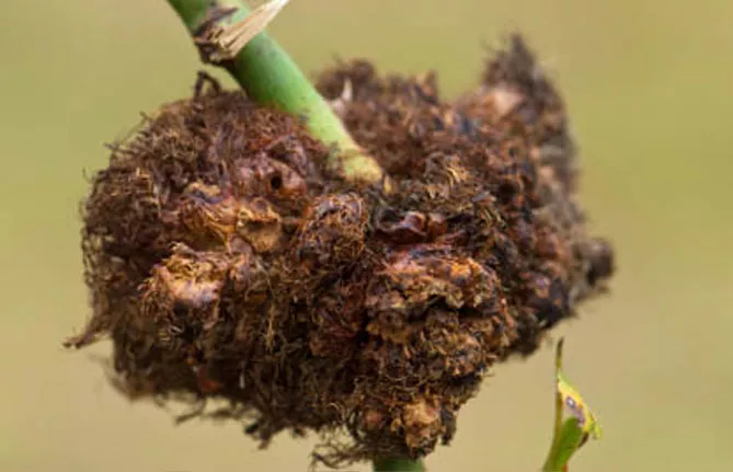 Особые признаки: иногда галлы могут иметь гладкую поверхность, из-за чего их трудно отличить от обычного разрастания у основания куста роз или от соединения прививок.