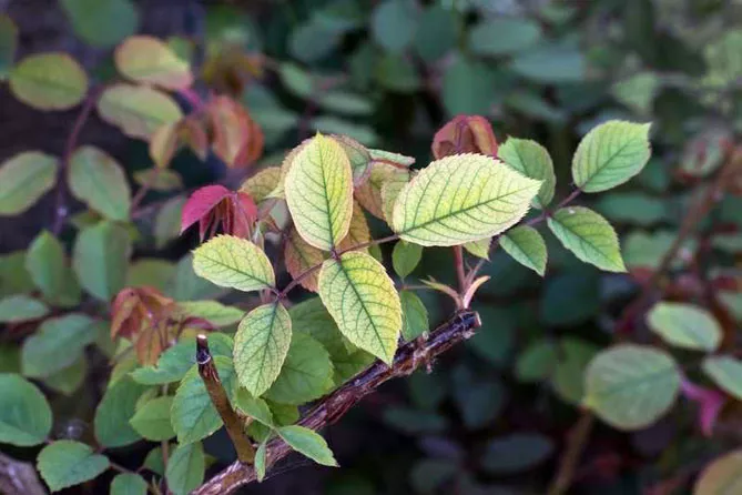 Розы могут демонстрировать специфическое обесцвечивание листьев в зависимости от типа питательных веществ, в которых они нуждаются: