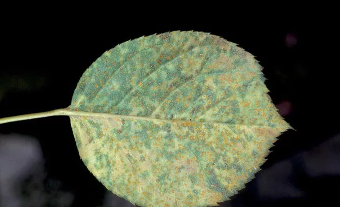 Когда на верхней поверхности листа появляются желтые пятна, чтобы подтвердить диагноз, переверните листовую пластину, чтобы увидеть оранжевые пустулы.