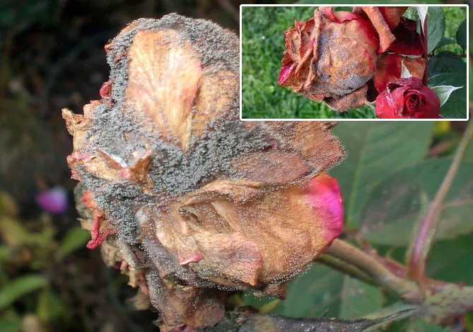Это грибковое заболевание, вызываемое грибом Botrytis cinerea. Чтобы споры этого грибка проросли и проникли в розовый куст, требуется высокая влажность. Поэтому этот гриб чаще встречается в теплицах. В периоды высокой влажности гриб может производить споры в больших количествах. Эти споры быстро распространяются на новые растения ветром или водой.