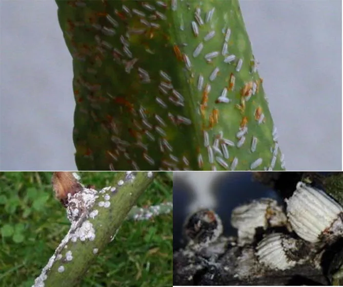 Эти белые полужесткокрылые насекомые питаются соком и могут нанести большой вред и ослабить растение, делая его более уязвимым для поражения грибками. Их часто бывает трудно обнаружить. Вредителей выдают несколько признаков: