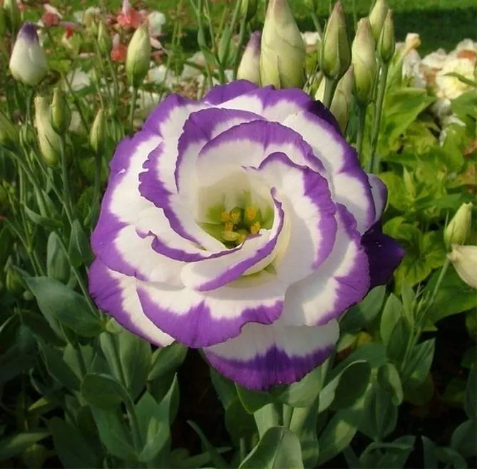 Наиболее эффектны и популярны среди цветоводов эустомы крупноцветковые (Eustoma grandiflorum или Eustoma russelianum). Иногда вид называют также лизиантус или горький цветок, ирландская роза. В зависимости от сорта, эустома может имеет махровые или простые лепестки. На родине, в Америке цветок называют техасский колокольчик. Его естественной средой являются травянистые районы Центральной и Северной Америки, где он обильно цветет на лугах, пустырях.