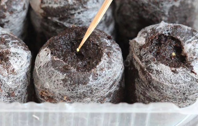 Очень удобный способ посева семян на рассаду – в торфяных таблетках. Семена высеваются в таблетки, затем растения легко пересаживаются, без травмы корней.