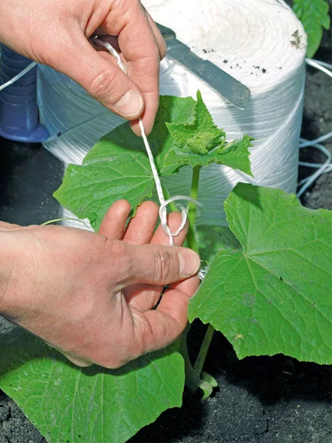 Огурцы рекомендуется подвязывать, так как лежащие на земле плети могут подгнивать, болеть. Существуют разные способы и технологии выращивания: на шпалере, на сетке, на подпорах, решетках. Подвязанные вертикально растения занимают меньше места и становятся здоровее, легче собирать урожай. Растения любят лезть на решетку. Большинство сортов огурцов достигают нескольких метров в длину и могут легко подниматься на опору – цепляются усами. Иногда им стоит помочь – подвязать. Подставки для огурцов должны быть достаточно прочными, чтобы выдержать вес плодов.