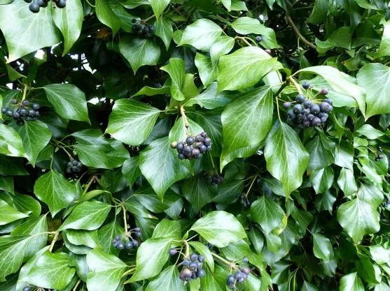 - Плющ трудно принимается, потребуется год чтобы он хорошо прижился, но позже лиана быстро растет, укореняясь вдоль побегов, лежащих на земле. На старых лианах появляются зелено-желтые соцветия, а следующей весной – плоды.