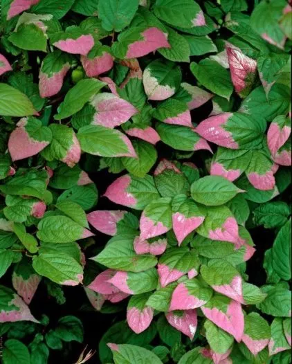 Оба вида похожи в выращивании и уходе, отличаются цветом листьев и силой роста. Листья актинидии коломикта трехцветные – зелено-бело-розовые. Вьющийся куст растет до 5 м, а острый вид достигает длины 15 м. Дополнительное преимущество – осеннее, интенсивное желтое обесцвечивание листьев.