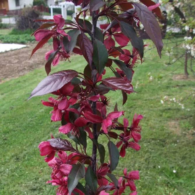 Яблоня ‘Royalty’ – один из лучших декоративных сортов с пурпурной листвой. Это маленькое деревце сочетает в себе много ценных декоративных качеств: