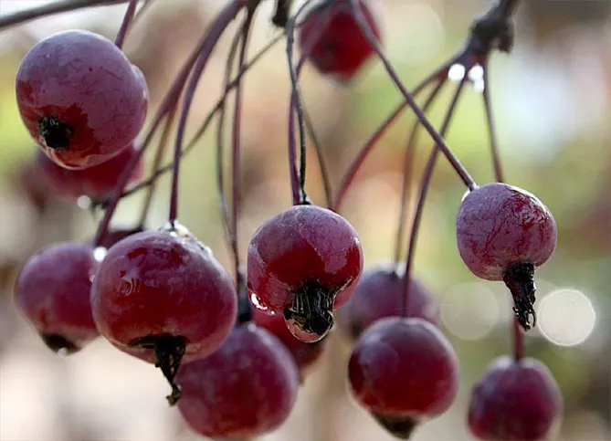 - миниатюрные красные яблочки, похожие по размеру и форме на вишни, которые сохраняются на ветвях зимой;