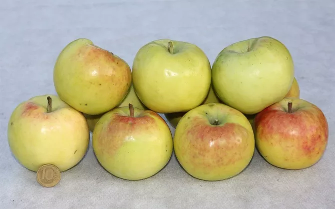 В фазе съемной спелости яблоки имеют приятную желтовато-зеленую окраску, которая во время наступления потребительской спелости (при хранении) становится золотисто-желтой. Со стороны, освещенной солнцем, на плодах появляется размытый румянец.