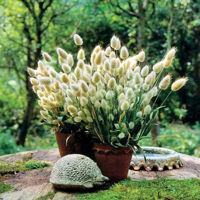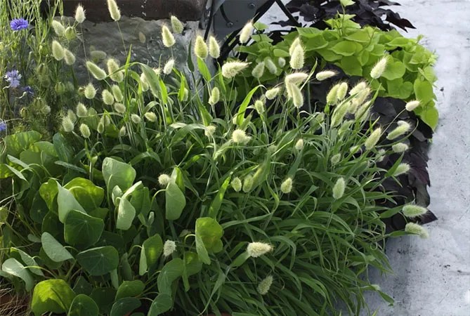В горшке лагурус образует красивый зеленый пучок с торчащими колосьями, который можно смешивать с сезонными цветами. При выращивании в контейнерах обратите внимание на то, где горшки стоят – на полном солнце растение лучше цветет, в тени будет выше.