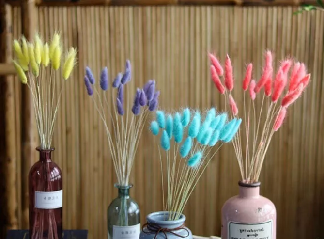 Если нужно добавить немного цвета, чтобы украсить интерьер, можно окрасить соцветия лагуруса. Налейте воду в стакан и добавьте пищевой краситель любого оттенка. Используйте краситель по инструкции на этикетке. Окуните цветок в воду в течение 10 секунд, проверив, что все лепестки пропитаны. Удалите цветок из воды, дайте высохнуть в течение 24 часов. После этого поместите цветы в прозрачную бутылку, вазу.
