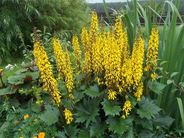 Напевно, немає більш гарної та розкішної рослини, яку можна виростити у вологій тіні, ніж бузульник. Цей довгоживучий багаторічник під час цвітіння досягає значної висоти (1-1,5 м) і сильно розростається в сторони, тому ідеально підходить для вирощування у великих садах або на краю затіненого водойми. Також він чудово росте в тіні дерев і кущів за умови, що в нього постійно трохи волога ґрунт. У цій статті ми розповімо та покажемо, як вирощувати бузульник – посадка та догляд у відкритому ґрунті, фото видів і сортів.