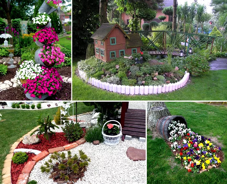 Декоративні рослини – прикраса будь-якого саду. Красиво представити квіти та трави, забезпечити їм відповідні ґрунтові умови допоможуть клумби, що відокремлюють квітник від решти частини саду декоративним огородженням. Спосіб оформлення клумби слід адаптувати до стилю саду. Важливо, щоб використаний матеріал гармоніював з існуючими елементами архітектури дачної ділянки. Варто використовувати довговічні матеріали, стійкі до несприятливих погодних умов, механічних пошкоджень. Щільні огорожі також обмежать розростання трави. Кілька ідей, як і з чого зробити своїми руками клумби на дачі представлені нижче.
