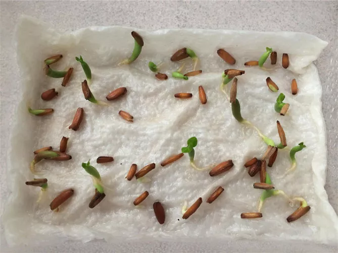 Замочуйте насіння, поки вони не набрякнуть і не впадуть на дно ємності з водою. Замочування дозволяє пом'якшити оболонку насіння, стимулювати проростання паростків. Зазвичай насіння проростає і без замочування, але варто збільшити шанси. Усередині мають з'явитися білі «черв'ячки». Насіння, здатне до життя – проростає, швидко переносимо їх у ґрунт.