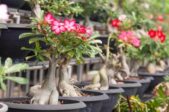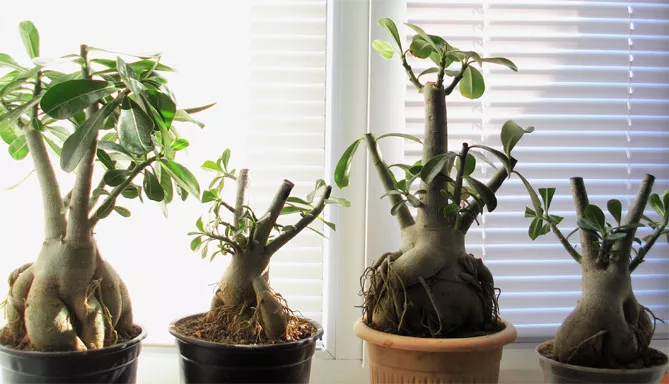 Адениум відноситься до сукулентів – рослинам, пристосованим до життя в умовах обмеженої водності. Вид також називають «Троянда пустелі» або міні-баобаб, він часто вирощується як бонсай. Створити бонсай з рослини дуже просто, тому що адениум формує його практично самостійно. Завдяки гарним квітам він стане оригінальною прикрасою будь-якого дому.