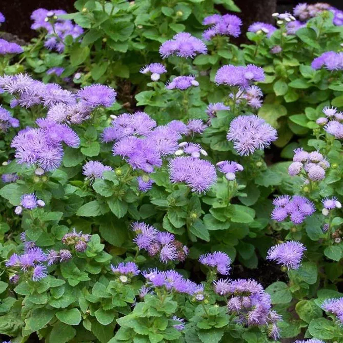 Здавалося б, осінь – це кольори золота, міді чи червоного, але існує безліч блакитних та фіолетових квітів, які чудово поєднуються з жовтневим пейзажем. Наприклад, агератум, чий надзвичайно інтенсивний колір привертає погляд. Квітка дуже популярна, разом з іншими видами однорічних рослин часто висаджується на рабатках, межах клумб. Її можна садити у спеціальні контейнери на терасі, добре росте у горщику. Завдяки невеликим розмірам квітку вирощують на балконі.