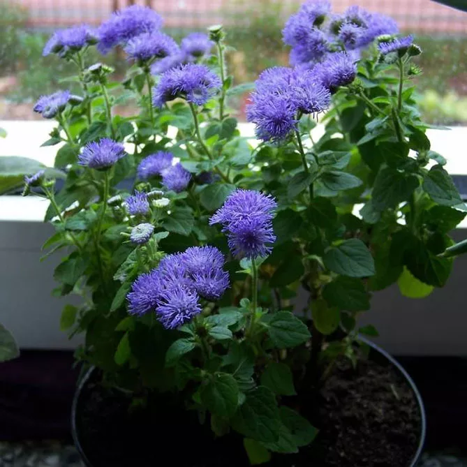 Агератум можна висівати в ґрунт (або балконні ящики) лише після проходження весняних заморозків. Можна посадити 2-3 рослини в один горщик. Краще, щоб температура повітря становила 15-20 градусів.