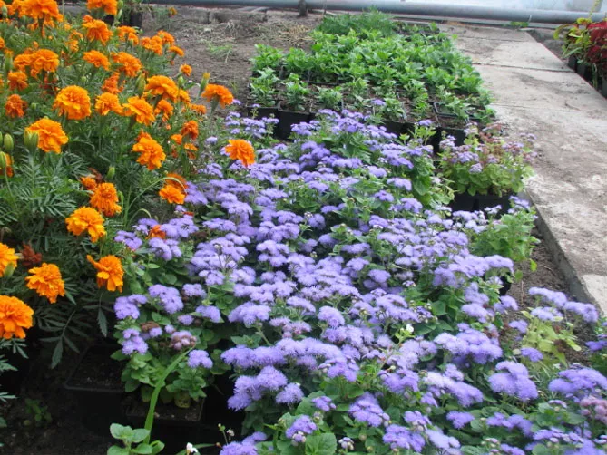 Фото. Сходи після пікірування - Загартовування розсади. Перед пересадкою агератума у відкритий ґрунт, розсаду загартовують. Рослини поступово звикають до умов, що панують на вулиці, наприклад, провітрюючи кімнату з розсадою або виносячи її на кілька годин на день на вулицю, поступово збільшуючи час загартовування.