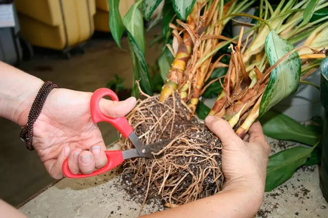 Потрібно оглянути корені після того, як рослину вийнято з контейнера. Корені можуть гнити, тому всі чорні чи темні сегменти потрібно відрізати. Це не має нашкодити рослині.