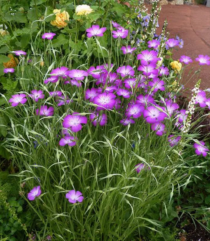 Фото – квіти агростема на клумбі, у ландшафтному дизайні саду
