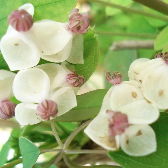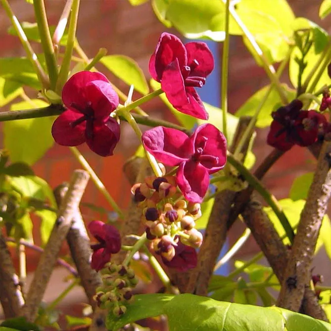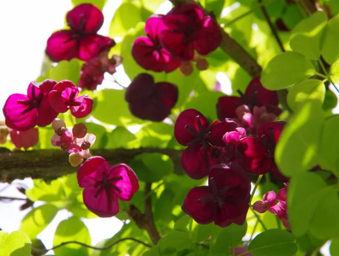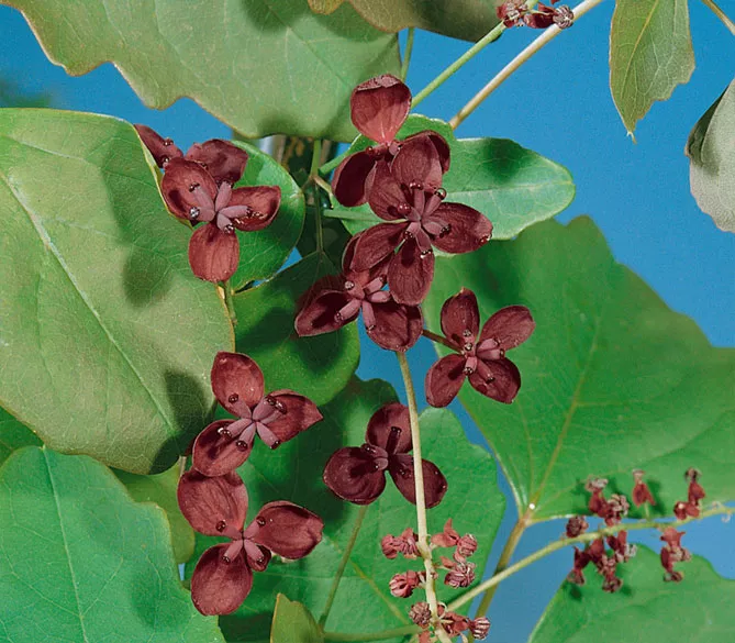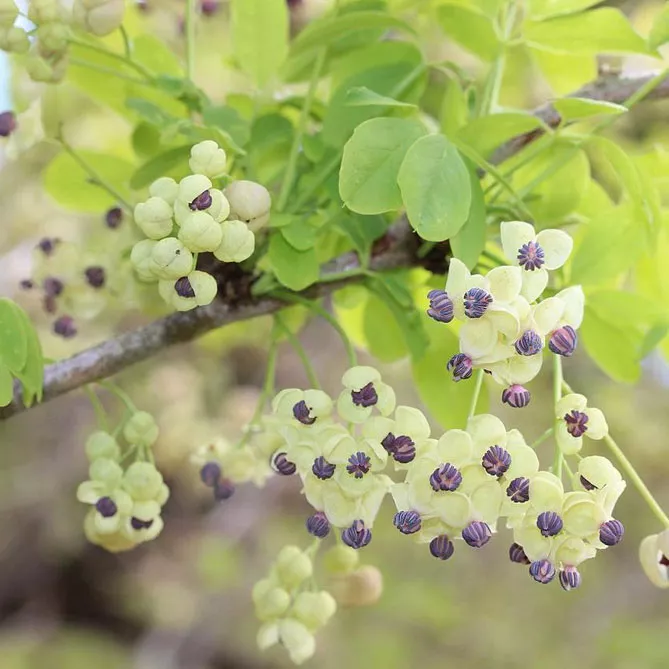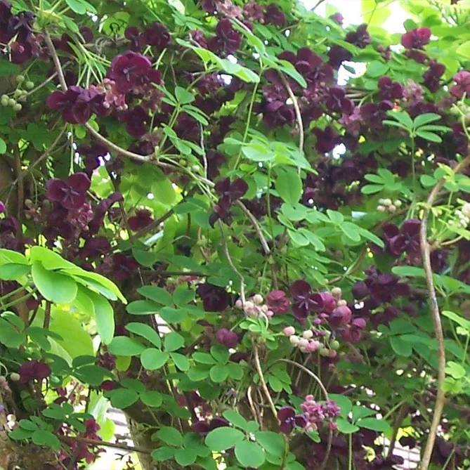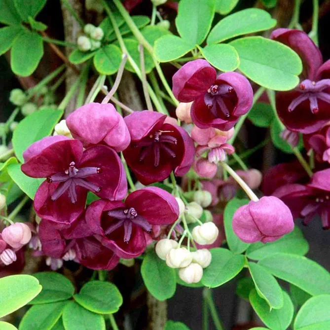 Легка у вирощуванні та невибаглива, Akebia quinata, як і гібрид Akebia x pentaphylla, рясно й рано цвіте з квітня по травень. Численні квіти з ароматом ванілі чи шоколаду, що утворюють своєрідні дзвіночки, широко розкриваються. Вони бувають у різних відтінках: від темно-рожевого до пурпурно-фіолетового, винного, кремово-білого кольору.
