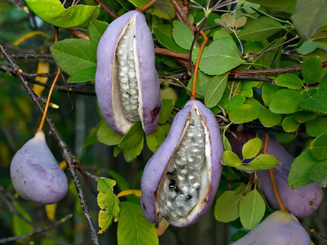Після теплої весни та літа на запилених жіночих квітах у вересні-жовтні з’являються м’ясисті, опушені плоди. Вони мають незвичайну форму м’ясистих, дугоподібних огірків довжиною 5-8 см, синьо-синіх чи лілових. Дозрілий плід розкривається, оголюючи великі чорні насінини. Ці їстівні плоди, підвішені на кінцях гілок, збирають, коли вони починають розкриватися (у вересні-жовтні), проте вони представляють передусім декоративний інтерес.