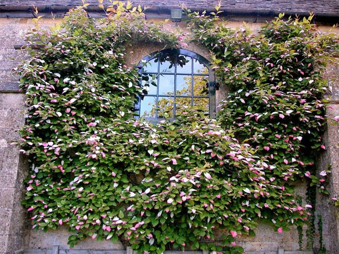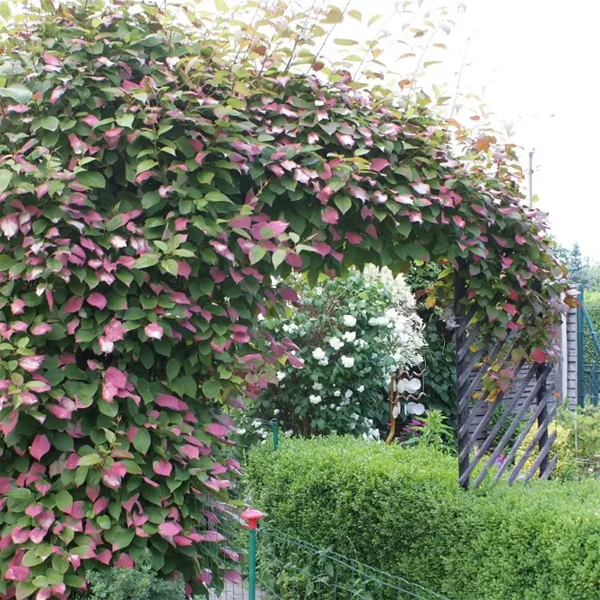 Декоративна виюча рослина з листям рожево-біло-зеленого кольору. Виростає до 3-4 метрів. Квітки злегка ароматні, білі, з'являються у травні. Маленькі плоди ліани досягають зрілості та падають у серпні.