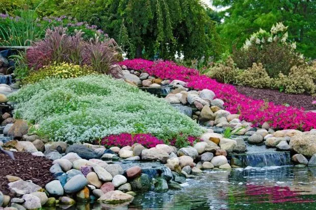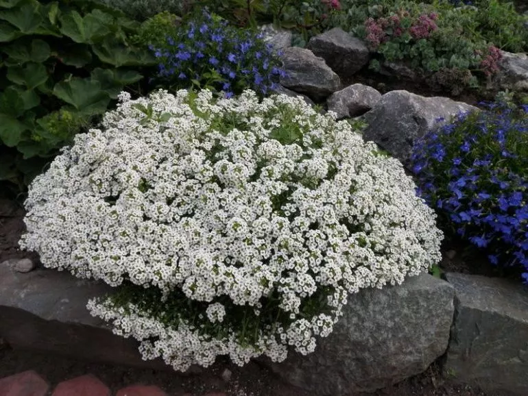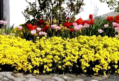 Весняної пори золотисто-жовтими квітами порадує грядки скельний вид, з літа до осені нас тішитиме алісум морський з білими, рожевими або фіолетовими квітами. Квітки невеликі, але численні, розташовані на одному стеблі, зібрані в так звані грона. Пагони з квітами досягають довжини 30 см, ростуть із розетки подовжених листків сірувато-зеленого кольору.
