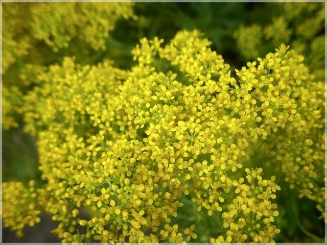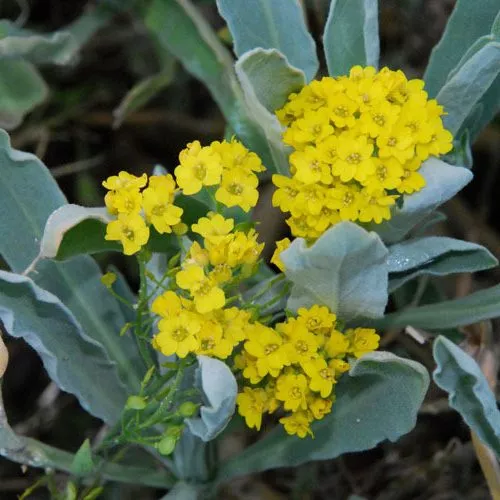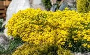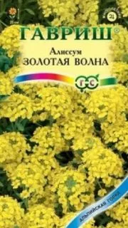Ґрунтопокривний сорт алісуму з жовтими, дрібними квітками. |