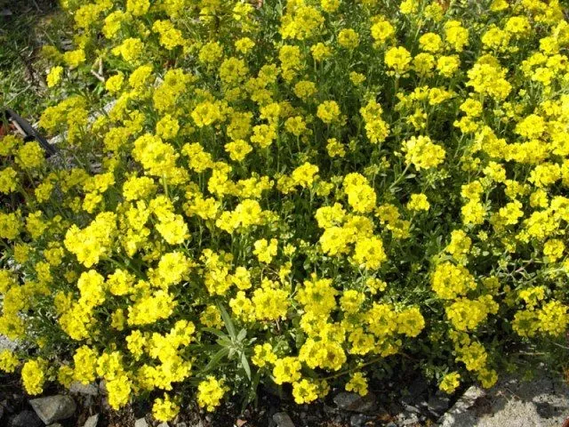 Вирощується в садах, сорт з високими декоративними якостями. Невеликі вимоги до місця існування. У квітні вкривається тисячами жовтих квітів, створюючи цікаві сонячні подушки, що відмінно контрастують з іншими квітами, наприклад, з фіолетовим флоксом. Родом з гірських районів Європи та Азії. Кущик із дерев'янистими пагонами. Квіти зібрані в волоть. Листки ланцетні, сіро-зелені. Кущ досягає висоти 30 см. Після відцвітання, якщо не потрібно, щоб рослина продукувала насіння, обрізаємо квіти і очікуємо цвітіння знову.