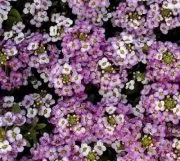 Алісум з великими квітами фіолетового, бузкового, білого кольору. |