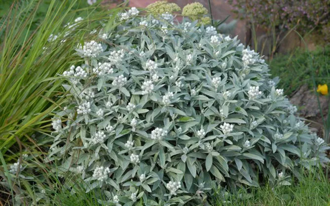 Фото. Вічнозелене сріблясте листя Anaphalis triplinervis ‘Sommerschnee’ та Anaphalis alpicola