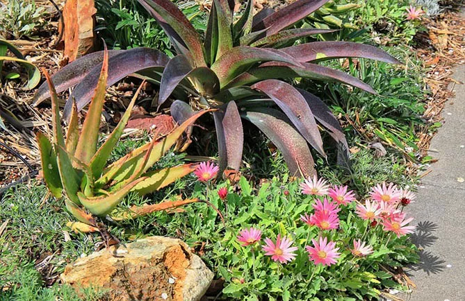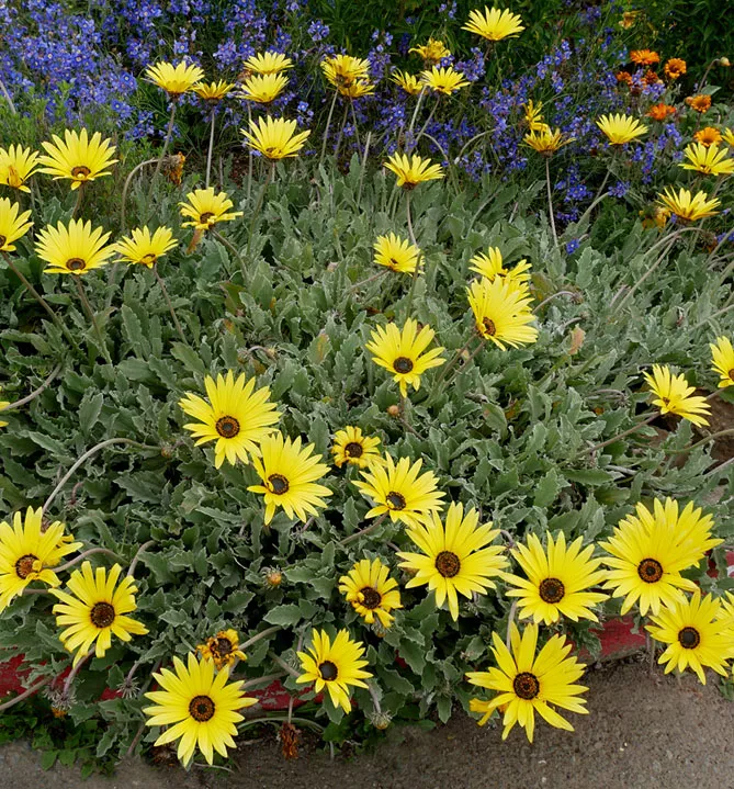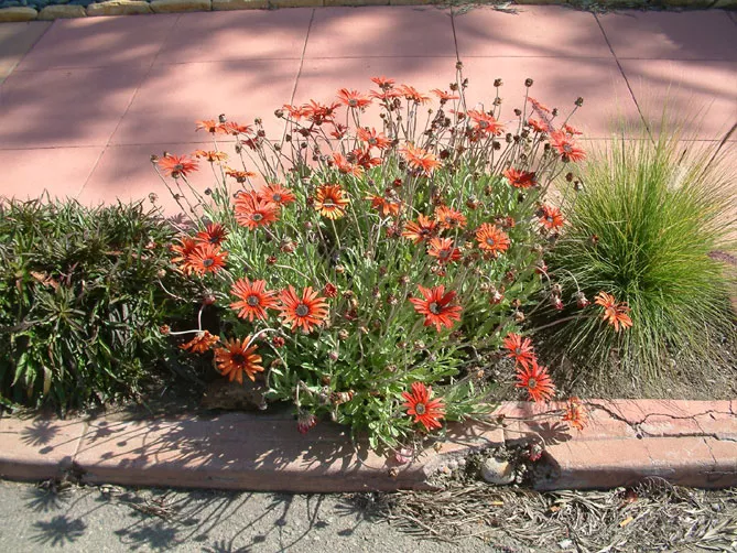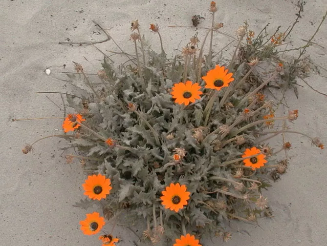 Ботанічний вид Арктотис короткостеблий (Arctotis breviscapa) досягає висоти 25 см і ширини 40 см. Квіти помаранчеві з жовтою серединкою.