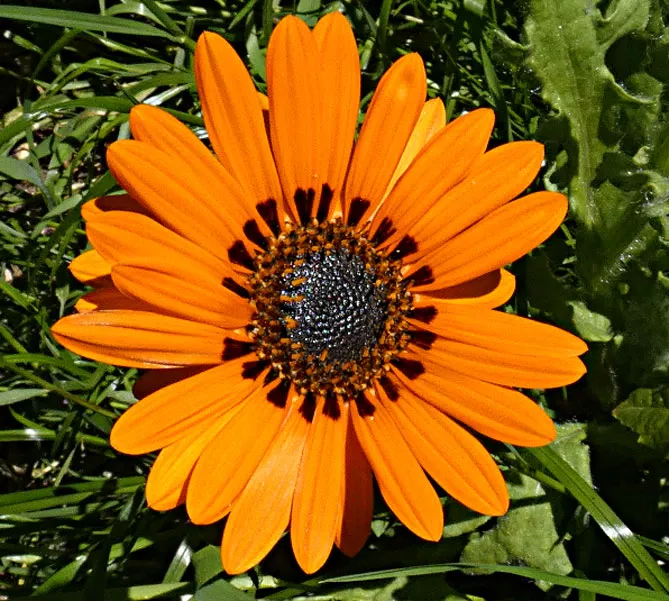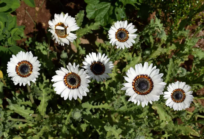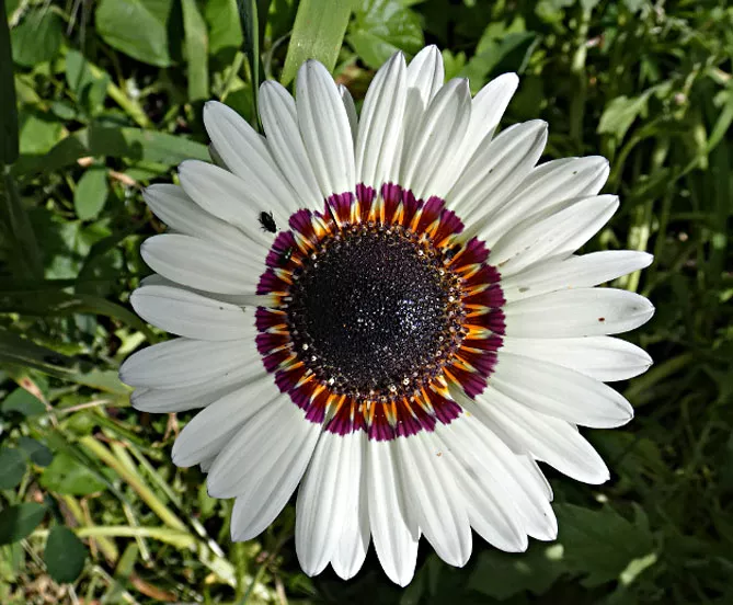 Фото. Популярний сорт даного виду – «Зулуський принц» (Zulu Prince) має білі квітки, чорну серединку-диск, обведену помаранчевими та чорними колами біля основи язичкових квіток.