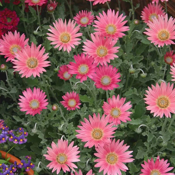 - «Ханна» (Hannah). Великі темно-червоні квіти, темно-коричневий центральний диск, квітка схожа на гербери. Висота рослин 40 см, ширина 50 см. Сіра, опушена листва, напіввічнозелена.