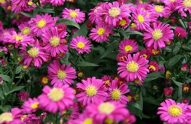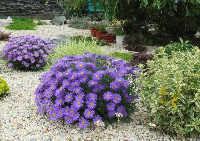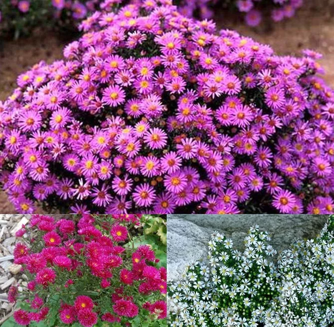 - чагарникові астри (Aster dumosus) – завдяки багатству темно-зелених листків чудово заповнюють вільний простір на рабатках, довго цвітуть, висота зазвичай становить 20-60 см;
