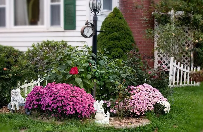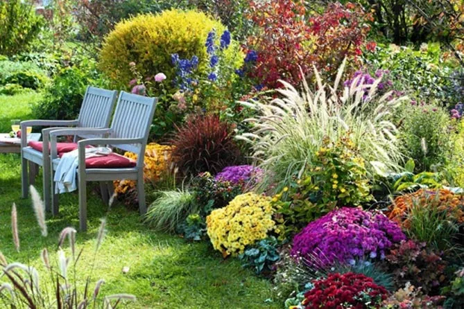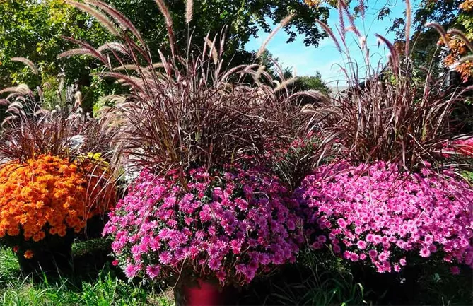 Квітучі пізні сорти виглядають гарно в компанії сріблястих і сірих декоративних трав.