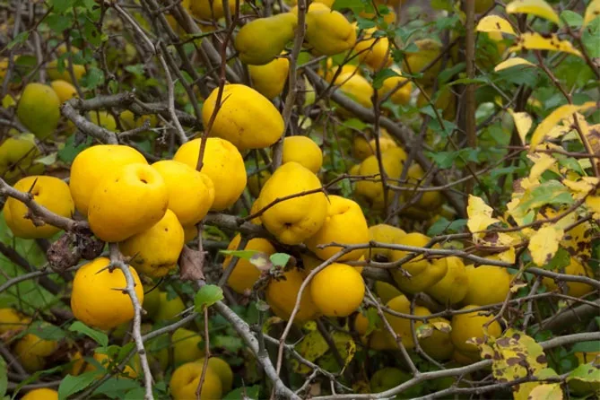 Особливе визнання і популярність отримали плоди чагарника, які дозрівають у жовтні і досягають 5 сантиметрів у діаметрі. Спочатку вони зелені, потім набувають жовтого кольору, шкірка стає злегка восково-жовтою, іноді з легким рум'янцем або червоними плямами. Вони вважаються справжнім скарбом вітамінів (С, А, В1, В2 і РР), мінералів (молібден, фосфор, залізо, магній, натрій, мідь, цинк), пектинів, органічних кислот.