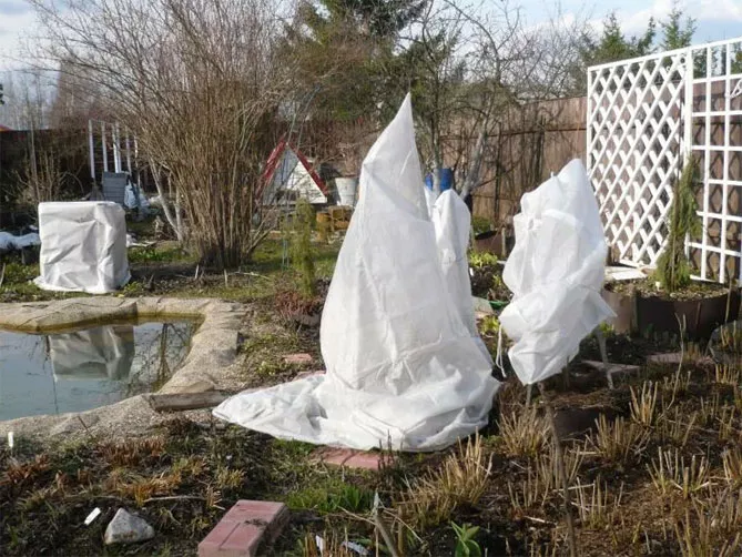 - Вічнозелені та напівлистопадні чагарники потребують абсолютного захисту на зиму, в ідеалі поєднуючи посипання кореневої зони товстим шаром мульчі або хвої та загортання надземної частини садовим нетканим матеріалом.