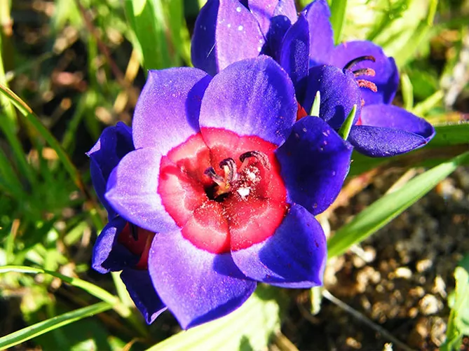 Бабіана червоно-синя (лат. Babiana rubrocyanea) також популярна завдяки ранньому цвітінню (в кінці зими) та темно-фіолетовим квіткам із червоним центром.