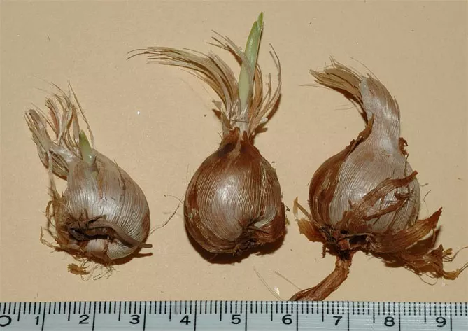 - Рослини заввишки до 30 см з кулястими бульбоцибулинами у волокнистій оболонці.