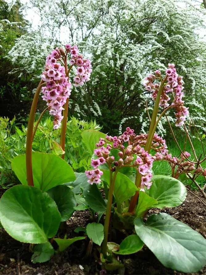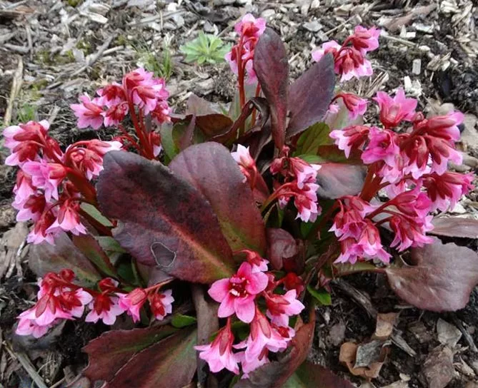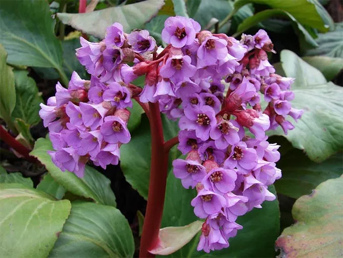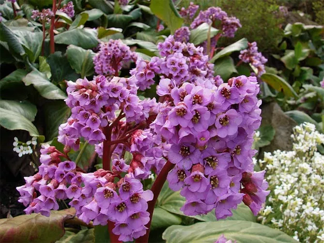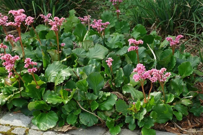 Bergenia crassifolia або бадан товстолистий досягає близько 30 см у висоту, цвітіння починається вже у березні.